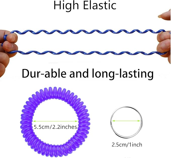 - Pack of 36 plastic coil stretch wristband keychains with purple colors, fit for personal items distinction, bunches of keys, luggage tags, memory sticks, pet name tags, etc.
