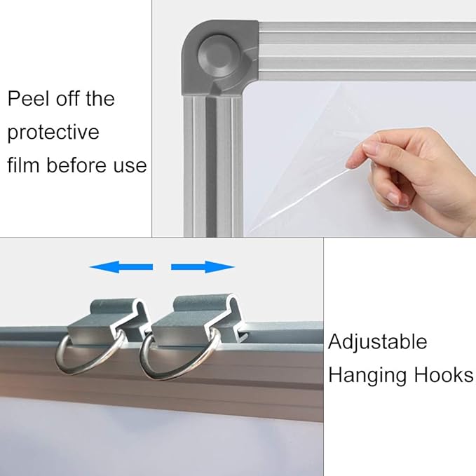 - 🌈Smooth and durable writing surface (precise size 18 x 24 inch): Magnetic dry eraser can easily erase writing marks and is not prone to bending bubbles. The silver aluminum alloy (never turning black) frame is made of Abs plastic corners, with no sharp or pointed edges