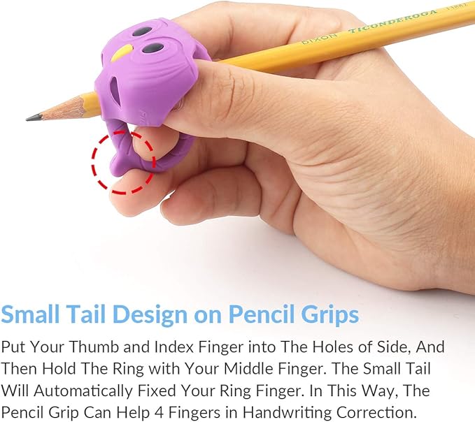 - CUTE AND NOVEL SHAPE: This training grips not only corrects the writing, but also has a cute elephant and owl shape which can stimulate children's interest. It increases the number of times children practice writing and develops their love of writing.
