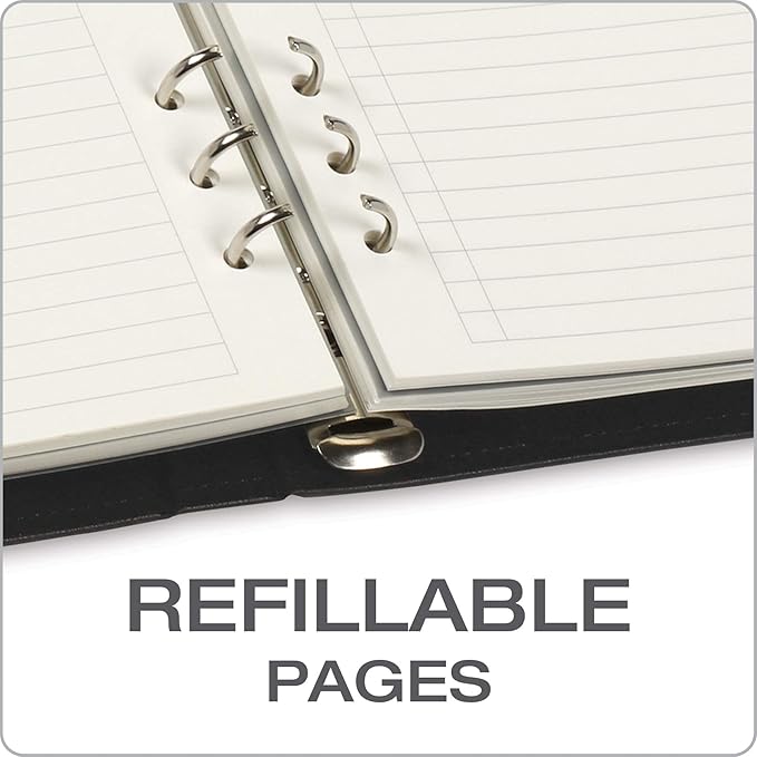 Oxford 6-Ring Professional Notebook, 7 x 9 Inch, Refillable Notebook, Writing Journal, Ivory Paper, 100 Sheets, Black Faux Leather Cover (90004)