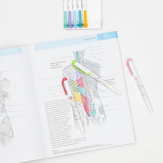 - Layer ink for extra creativity! Translucent, water-resistant ink in soft colors layers beautifully and won’t bleed through the page; Double ended marker-highlighters are perfect for coloring books