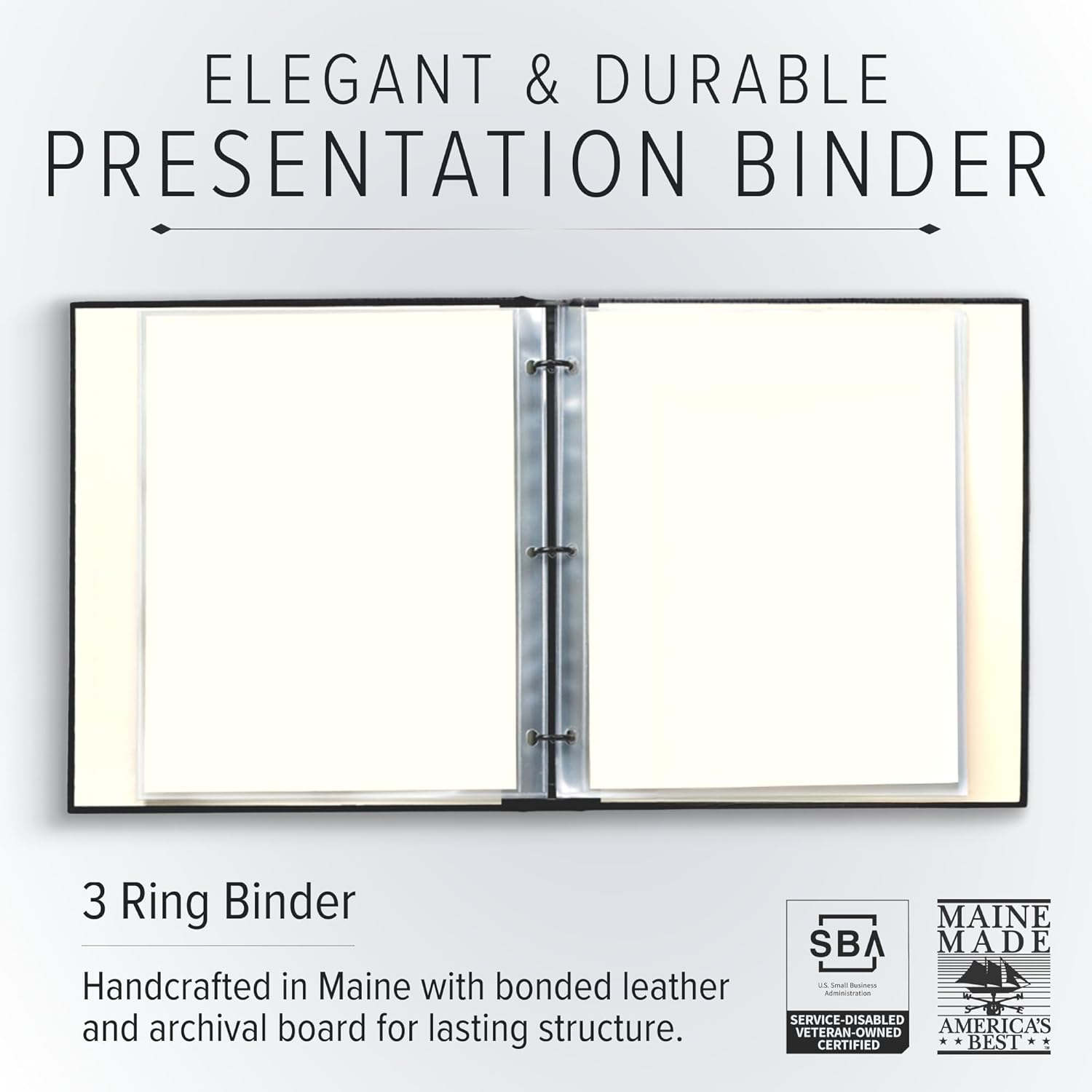 - 📗 𝗟𝗲𝗮𝘁𝗵𝗲𝗿 𝗕𝗶𝗻𝗱𝗲𝗿: Packed with professionalism and durability, our Gallery Leather binder features a bonded leather construction, complete with protector sheets and a hubbed spine. Choose from a range of colors and texture options to suit your style. Ideal for business professionals, military personnel, and enthusiasts alike