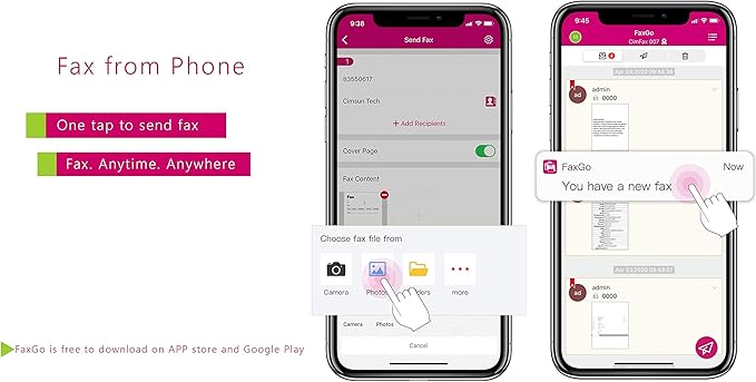 - One Tap to send fax on your smart phone. Remote access. Fax anytime anywhere.
