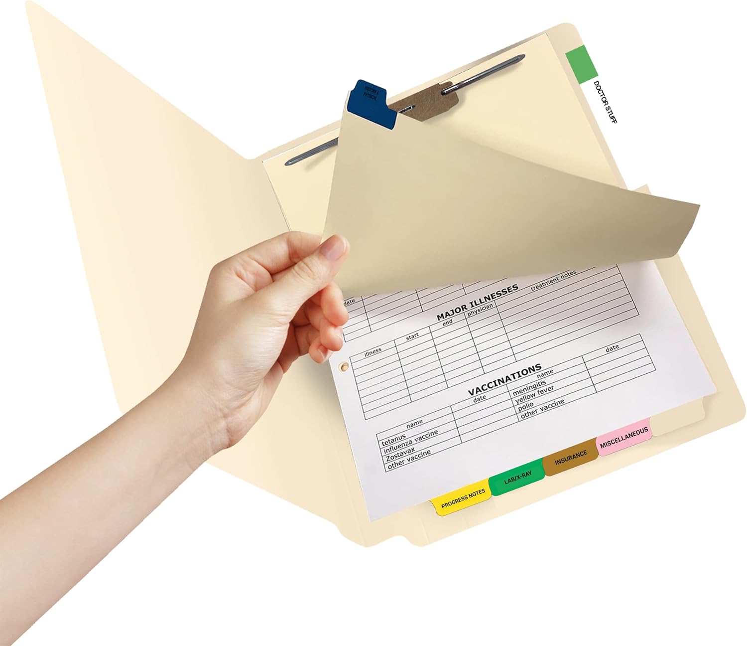 - STAY ORGANIZED: Medical chart dividers sets help organize patient charts, files, or records with standard inserts and common mylar colored tabs to match existing files and maximize efficiency of your healthcare practice . These durable bottom index tab reinforced separators come with file holes and are compatible with standard medical chart fasteners, ring binders and docuclips.