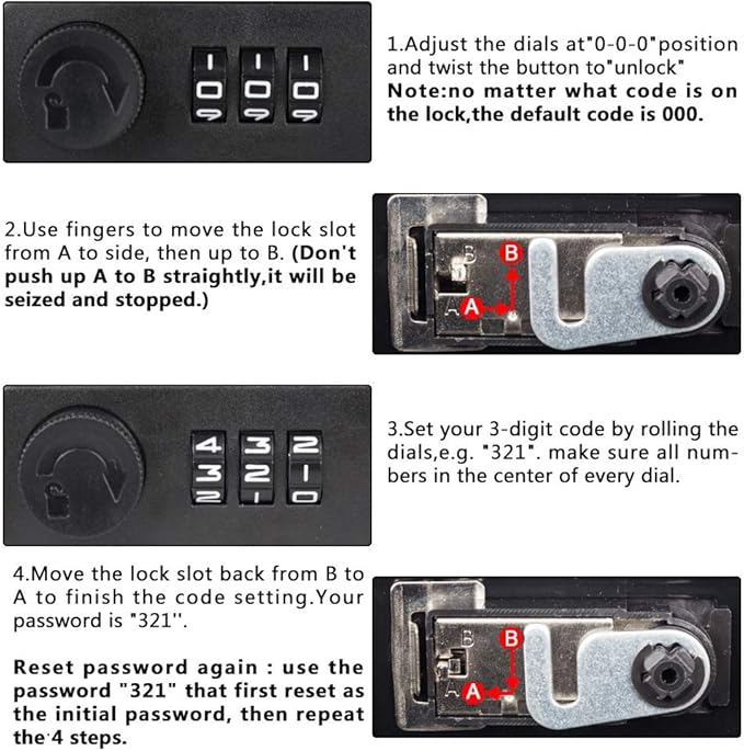 - ADVANCED COMBINATION LOCK: The locking device consists of a 3-number combination lock ,which contributes to protect your valuables.It is unnecessary for you to be afraid of losing your keys results from the well-designed code system, which can be simply set or changed.
