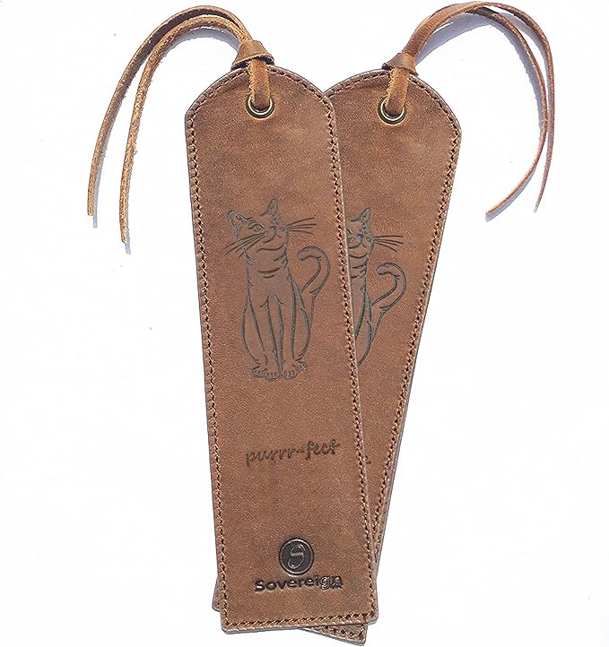 Leather Bookmarks for Men and Women | Quality Mens Bookmark with Cute Cat | 2 Smooth Handmade Leather Book Markers for Men Women Book Lovers Readers (7x2) Leather Gift | Sovereign-Gear