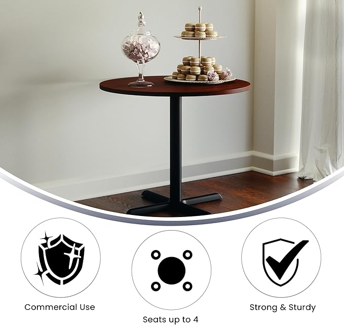 - DURABLE AND ATTRACTIVE: Made with a smooth stain-resistant cherry laminate top and sturdy cast iron x-base with adjustable floor glides to enhance any setting with a sleek appearance while providing unobstructed leg room