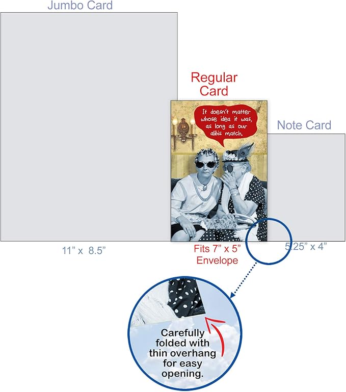 - CARD SIZE - Receive 1, regular sized notecard with 5x7 Inch envelope. We offer funny cards that come either blank or greeted inside, so be sure to review all product photos before purchasing.