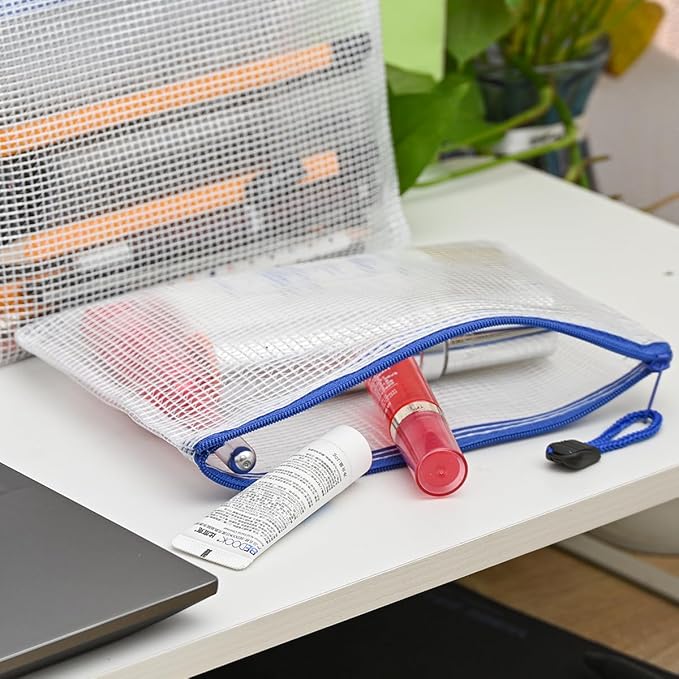 - Mesh pouches with translucent design. A solid PVC grid layout with moderate transparency could distinguish things in it easily, also protect your privacy at the same time