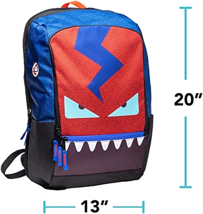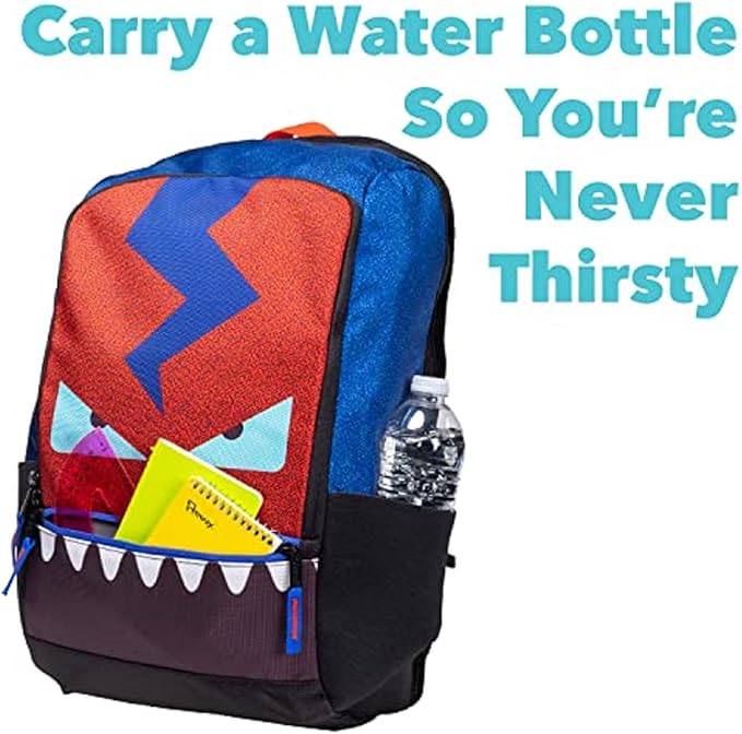 - FEATURES: This backpack features a fun and vibrant monster theme that lets you express yourself. An adjustable padded shoulder strap for comfortable use.
