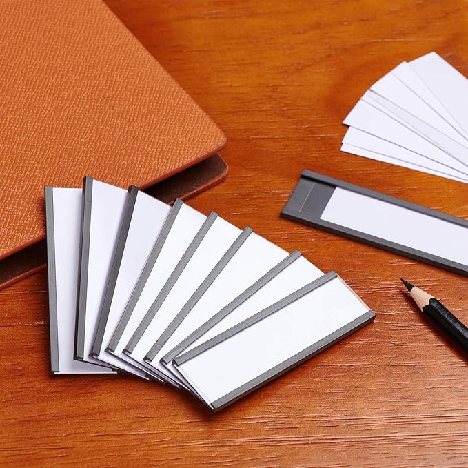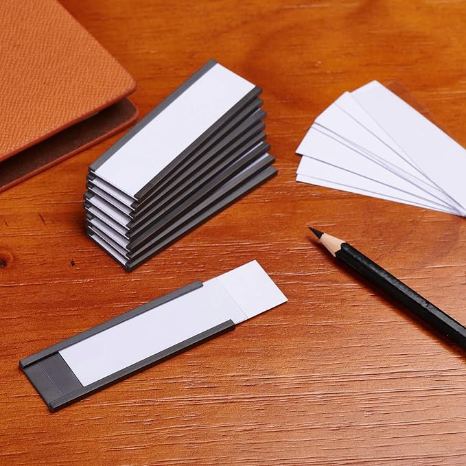 - Easy to use: write on the included paper strip, slide in the paper insert and the transparent protective film, stick the magnetic label holder to clean and flat surface, saving time and making reposition easier compared with traditional adhesive labels
