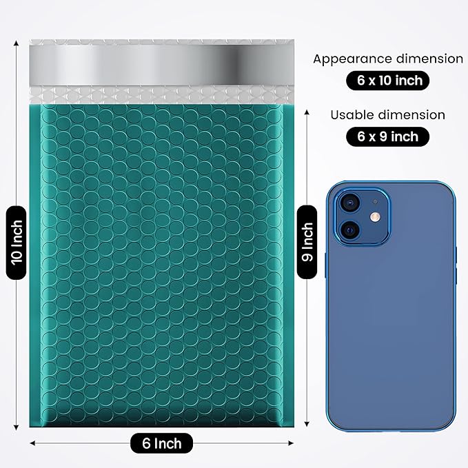 - 【Perfect Size Package Bags】The froest green bubble envelopes outer size is 6x10 inch, while the inner size is 6x9 inch.Perfect for Jewelry, cards, CDs, Phone Cases, lips, smaller books and more and more.