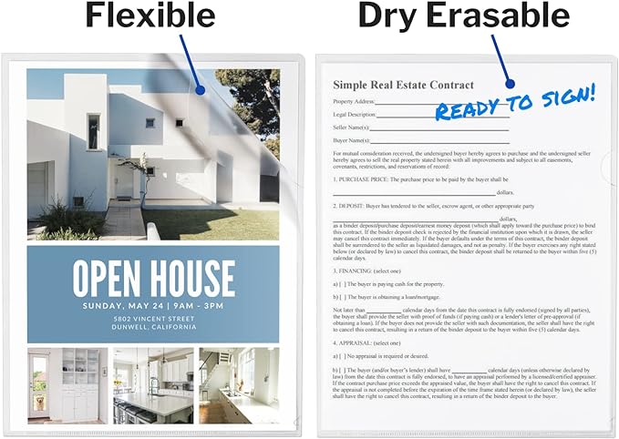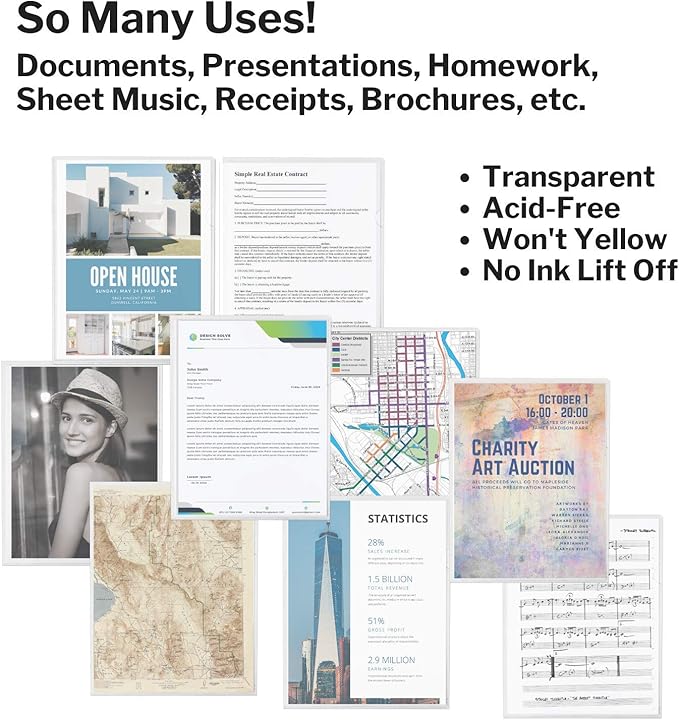 - Stay Organized: Plastic Sleeves are made of PVC-free poly plastic. Write-on file jacket is dry erasable, easy to clean. Acid-free, archival quality, no-copy transfer, no ink lift-off.