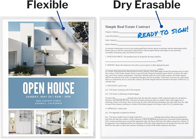 - Stay Organized: Plastic Sleeves are made of PVC-free poly plastic. Write-on file jacket is dry erasable, easy to clean. Acid-free, archival quality, no-copy transfer, no ink lift-off.