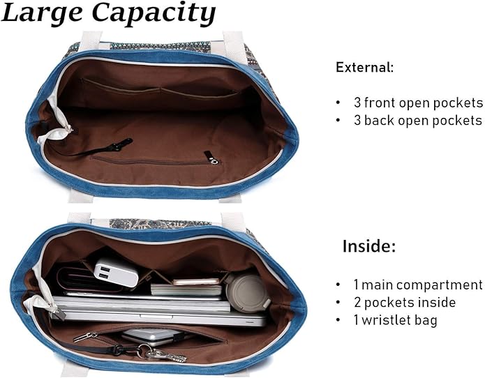 - Design: This Canvas Handbags uses a rich national wind pattern pattern,simple but stylish,durable and breathable