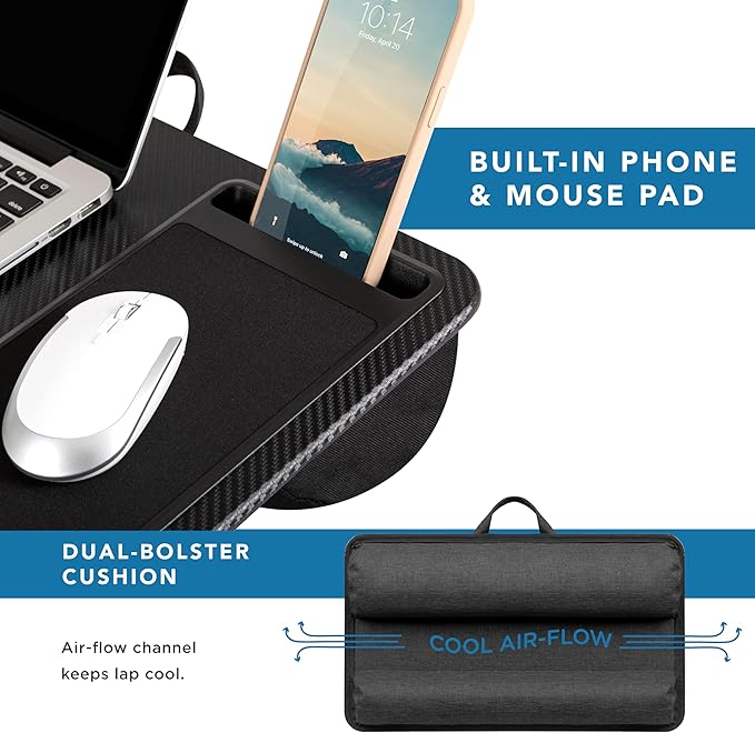 - Cool Comfort: Enjoy a stable surface with our lap desk's dual bolster cushion, designed for comfort and airflow, keeping your lap cool during extended use.