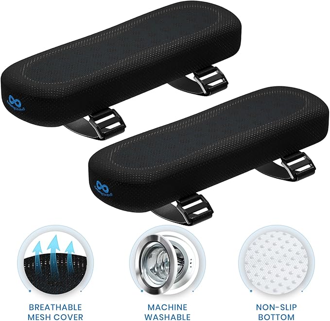 - Improves Sitting Posture: Use our desk chair arm pads to raise your chair arms, enhancing your posture and reducing upper body stress, ideal for desk chairs with limited adjustments