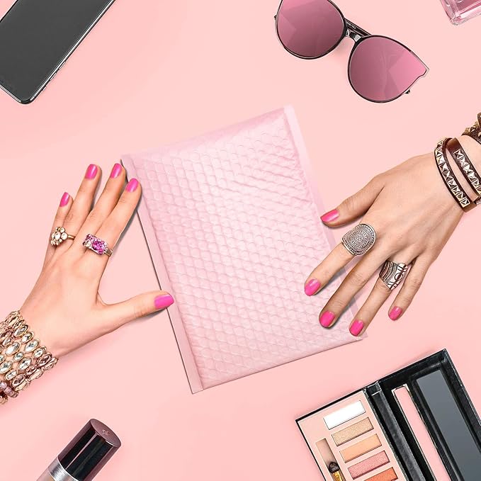 Fuxury Bubble Mailer, 6x10 Inch Bubble Mailers 50 Pack, Self-Seal Adhesive Padded Envelopes, Water Resistant Mailers, Shipping Envelopes for Packaging, Small Business, Mailing,Bulk Light Pink #0