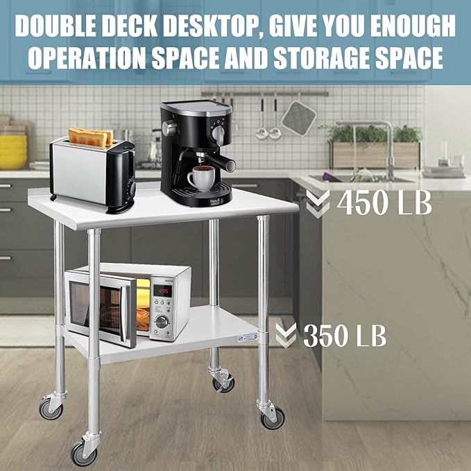 - Adjustable Table & Detachable Wheel** with casters, you can move it easily. With an adjustable galvanized steel undershelf and 4 galvanized steel legs, you can change the height of the undershelf to suit your demands. Quick to assemble by instructions
