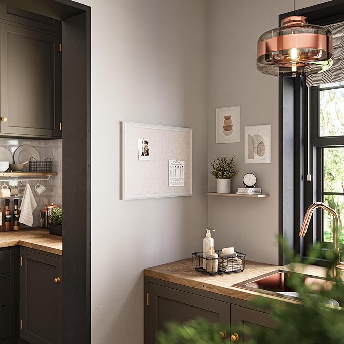 - SHARE, CREATE, COLLABORATE: Elevate your environment and share your ideas, inspiration, and important notes effortlessly with this 23"x17" linen bulletin board that adds a contemporary touch to any office, classroom, or home decor