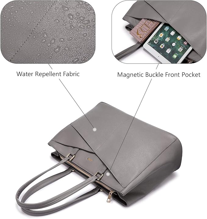 LOVEVOOK Laptop Tote Bag for Women 15.6 Inch Waterproof Leather Computer Bags Women Business Office Work Bag Briefcase Grey
