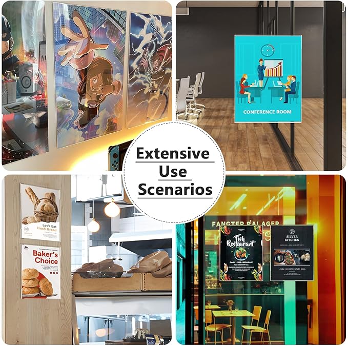 - Multiuse Frames: Perfect for marketing, displaying menus, important announcements, photos, brochures and advertising pamphlets. It can be used in restaurants, trade shows, exhibition, hospitals and any other location where you want to display your signs, certificates or advertisements.
