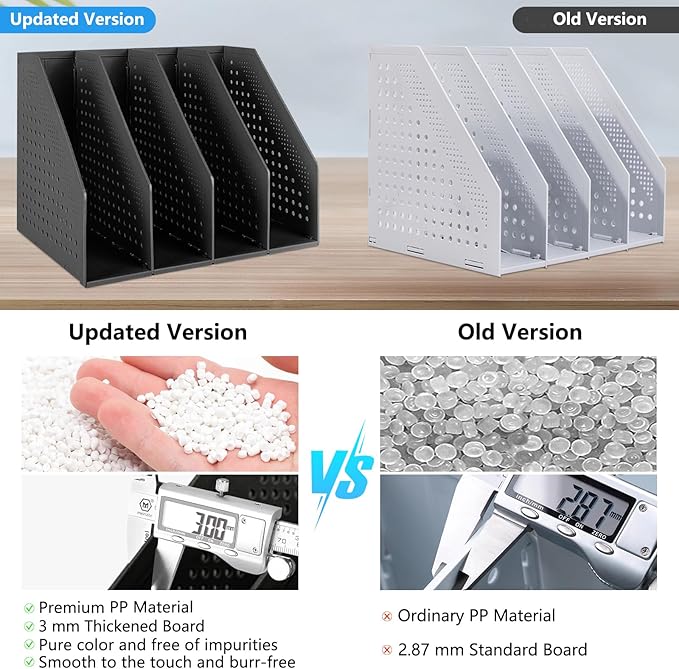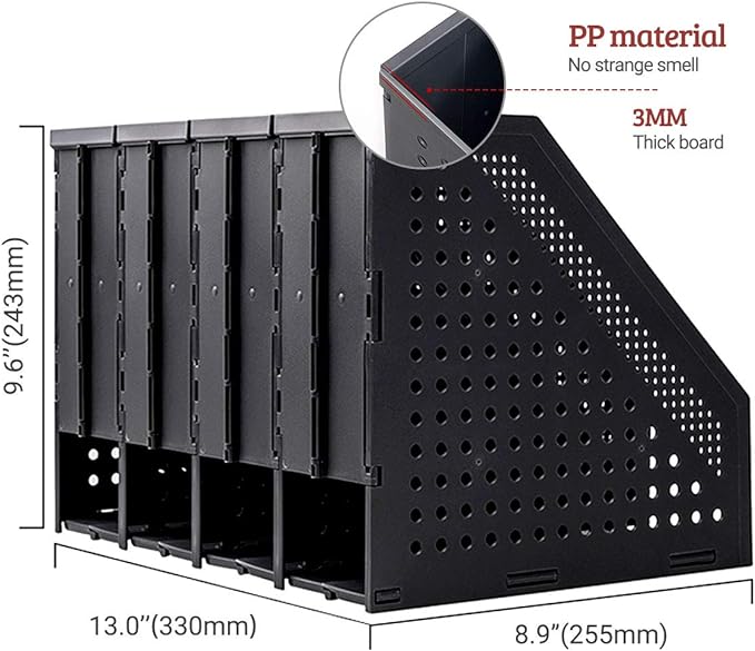 - COLLAPSIBLE MAGAZINE HOLDER: The binder holder organizer with foldable function allows it to flexibly expand or fold according to the size of the space. If you don't have too many files, you can fold the empty compartments to save desktop space.
