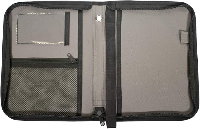 - Includes a sewn-in book mark, a pen holder, a name card pocket, and a mesh zipper pocket