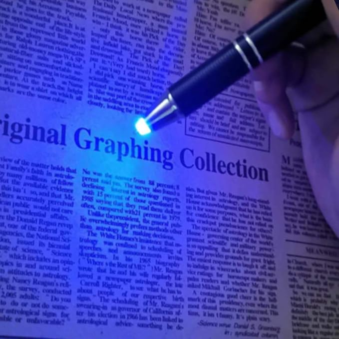 - MULTIFUNCTIONAL BALLPOINT PEN -- This fine point lighted tip pen not only writes well, but also looks as fabulous as a fast-fashion accessory, and can locate a dropped doohickey in a dark car. Reasonal brightness can provide incredible visibility in the dark environment