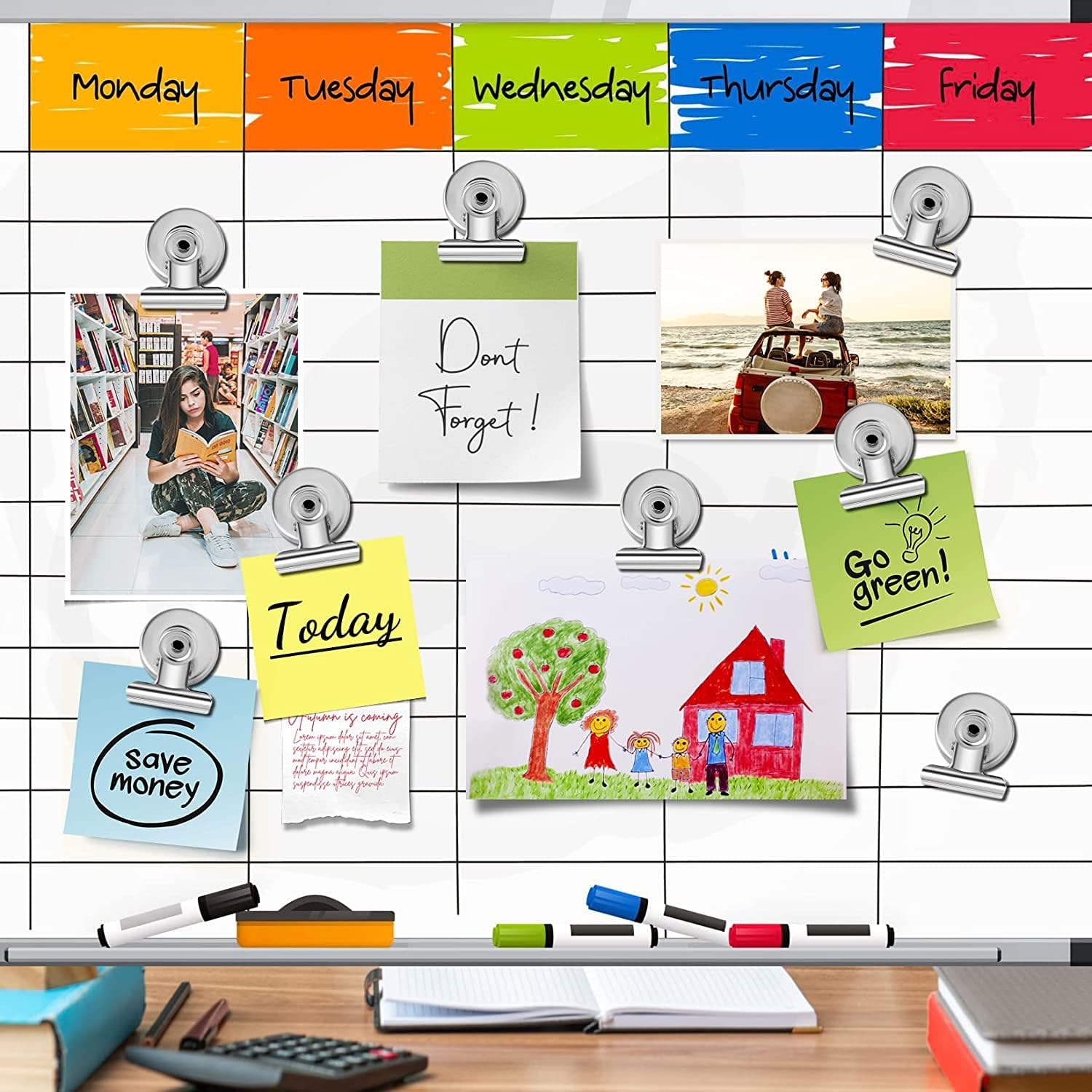 - Scratch-safe design - The heavy-duty magnetic clips feature a scratch-safe design, with smooth and flat metal edges that won't scratch items or surfaces. You can confidently use them on refrigerators, whiteboards, and other surfaces without leaving any marks.