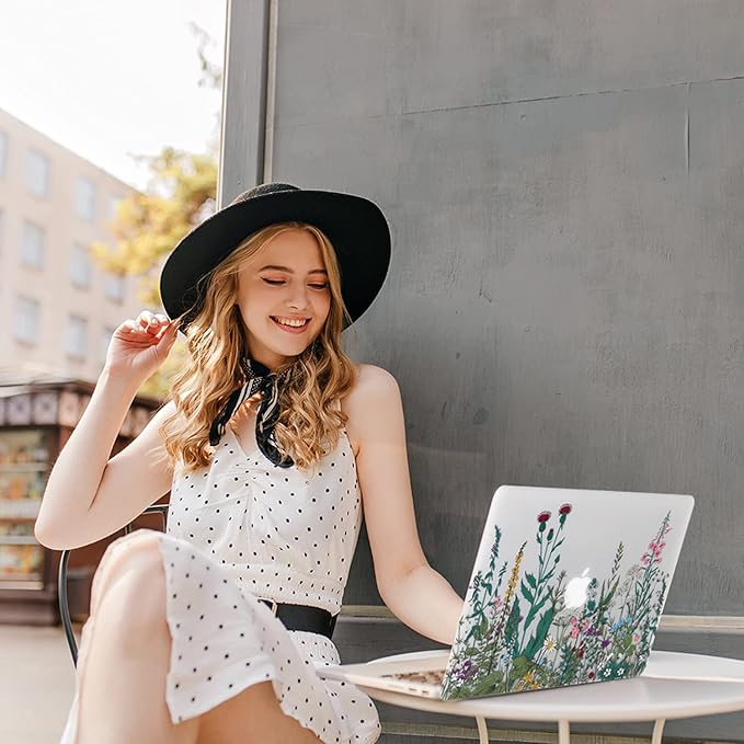 Case for MacBook Air 13 inch M1 A2337 A2179 A1932 2022-2018 Release, Matte Clear Hard Cover & Transparent Keyboard Cover & Screen Protector Compatible with Mac Air 13.3 Touch ID, Flowers