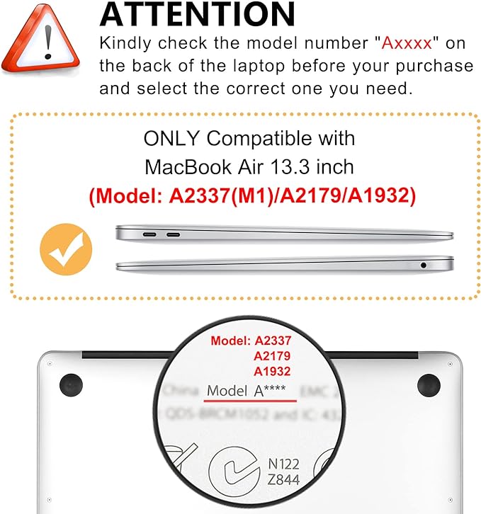 - The protective case is fit for model number: A2337, A2179 and A1932. User's manual attached on products may haven't been updated since model A2337 is newly launched. Any question, please contact us. Kindly check the model number "Axxxx" on the back of the laptop before your purchase and select the correct one you need.