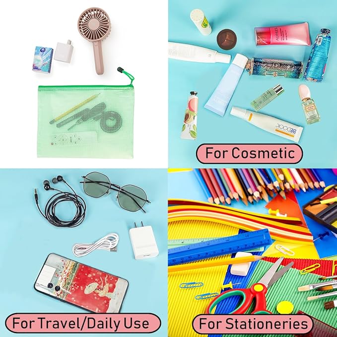 - 10 PCS Plastic mesh zipper bags, 11.4 x 8.2 inch B5 size. Widely used in office supplies, school, home daily life, hospital and travel. These pouches could meet your needs in all ways