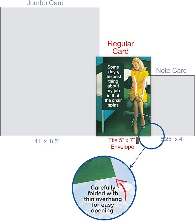 - CARD SIZE - Receive 1, regular sized notecard with 5x7 Inch envelope. We offer funny cards that come either blank or greeted inside, so be sure to review all product photos before purchasing.