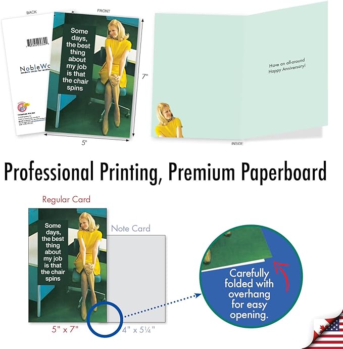 NobleWorks - Work Anniversary Card Funny - Retro, Vintage Notecard for Employees, Coworker, Women - Swivel Chair C4306ANG-WA