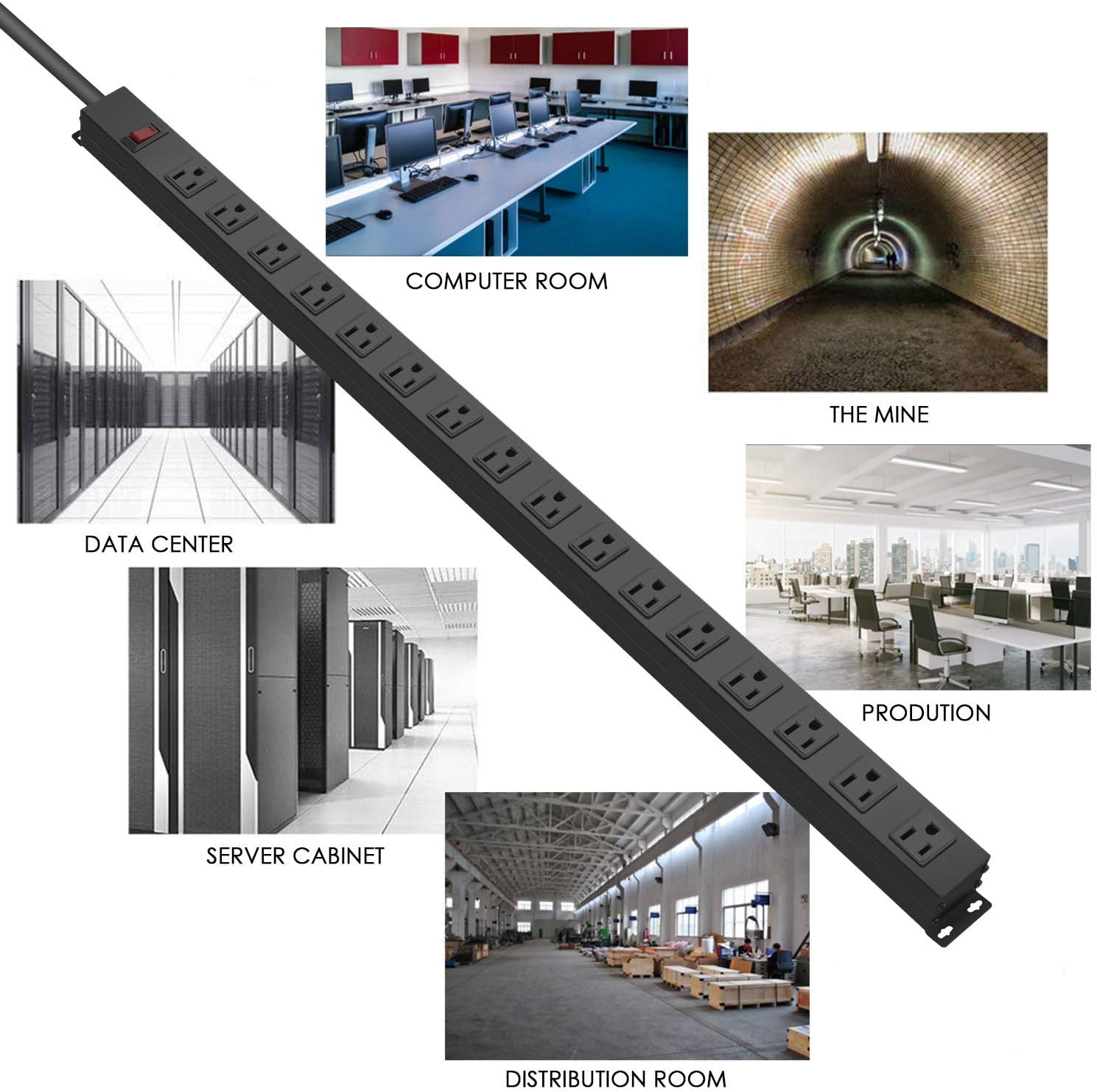 Metal Wall Mount Power Strip, Mountable Power Outlet, Aluminum Alloy Mount Power Socket with Switch, 6 FT SJT 3/C 14AWG Power Cord, 15A 125V 1875W (16 Outlet)