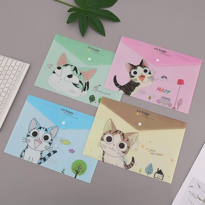 - 📁Package: 12Pack plastic zipper folders. Four different cat patterns, three for each pattern.