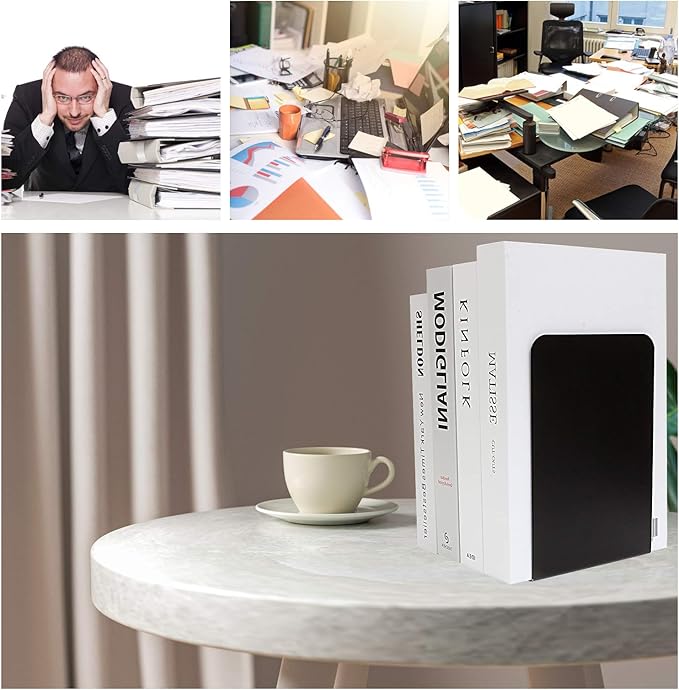 - ★No More Messy -- Use the book ends to hold books, you can say goodbye to messy desktops and keep your books, notebooks, files, magazines, documents, cookbooks, movies, DVDs, video games, or anything else you want to stand up tidy.