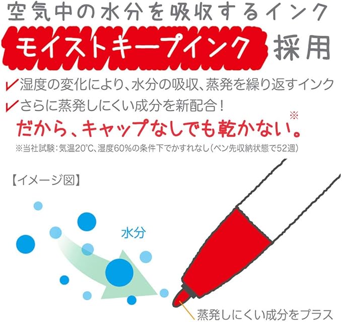 - [Features] 1. Even without a cap, the tip won't dry out. 2. Even if you stack it on black, it will get wet without bleeding