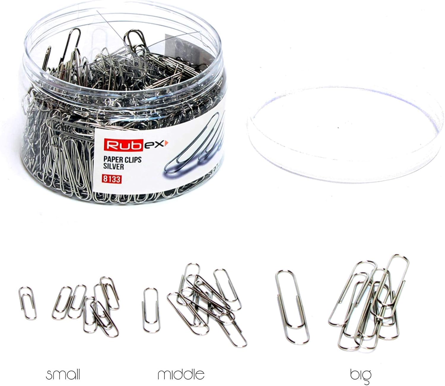 RUBEX 700 Paper Clips, Silver, Assorted Sizes: Small, Medium, Large – Durable & Rustproof for Office, School, and Document Organization
