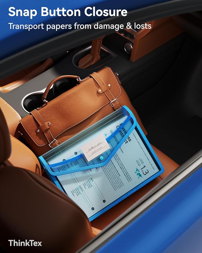 - "SEE THROUGH" PLASTIC FOLDER - ThinkTex transparent expanding file folder with snap closure, large capacity, 5 bright colors, fit letter/A4 size
