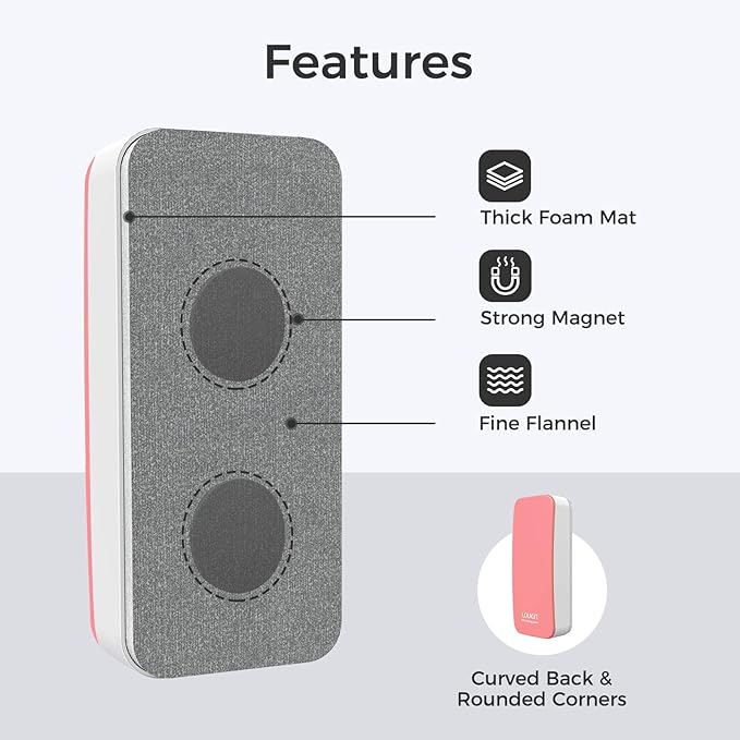 LOUKIN Magnetic Dry Erase Eraser, Whiteboard Eraser, Glass Board Eraser(Pink), One Bottle of 3.4 fl oz Whiteboard Cleaner Included, for Classroom, Home and Office