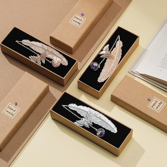 - Uniquely Designed: Vintage-style metal feather bookmarks with 3D butterfly pendant and Gift Box,Best teacher gifts women gifts,Motivates you to read and is a cheerful topic-starter for all ages and tastes.this gift stands out for its unique design and functionality,specially crafted for women who love reading.it's the perfect choice for teachers,librarians,book lovers,and anyone who enjoys immersing themselves in books