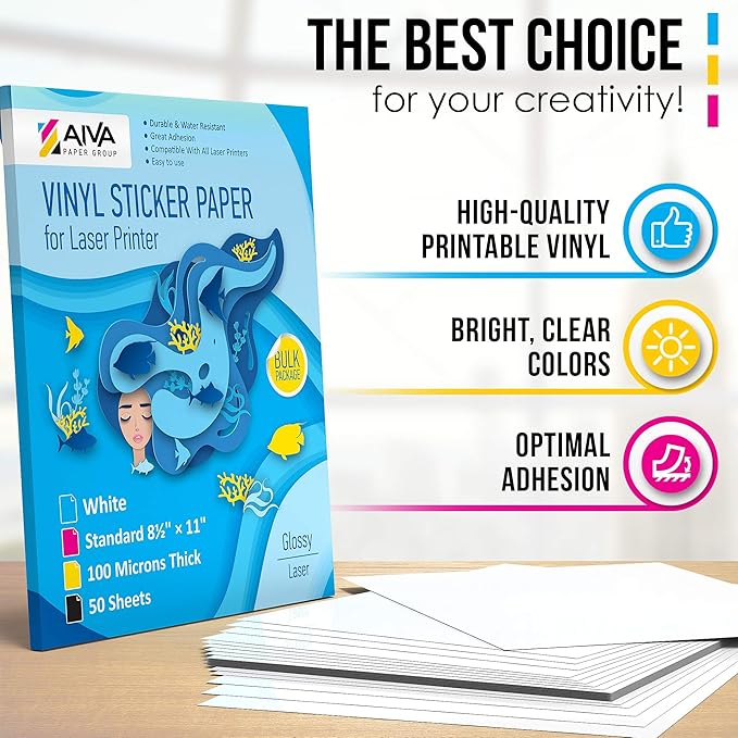 - Scratch and Tear Resistant Paper - our printable vinyl sheets for laser printer made with high-quality glossy printable sticker paper, your artwork will be extremely durable, bright colored and reliable