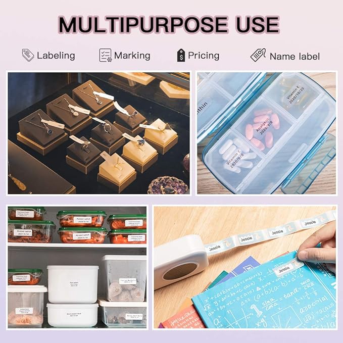 - √ Multipurpose: Perfectly for home/office/organization and more application.It's suitable for labeling,storing,marking and more endless tasks in daily life.Even work well in low temperature. It's water,abrasion resistant and BPA free