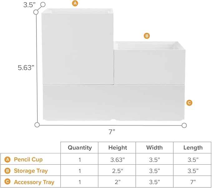 - Includes a storage tray, accessory tray, and pencil cup for ultimate storage and organization