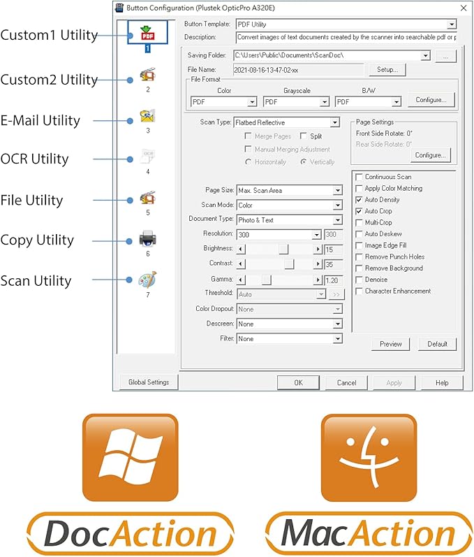- [EASY FILE MANAGEMENT] - With Doc Action, you easily scan and save to different file format. It also provides quick access to post-scan destinations, including scan-to-print, email, Windows Public Folder, FTP Web Folder. OCR function can enables searchable content on your scanned PDFs for greater productivity.