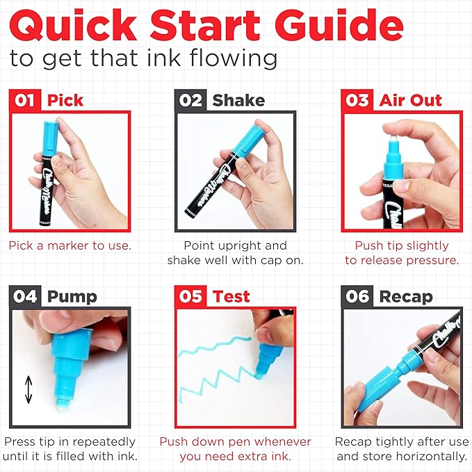 - Mess-Free - These liquid chalk pens are washable, dustless, non-toxic and safe for use at home