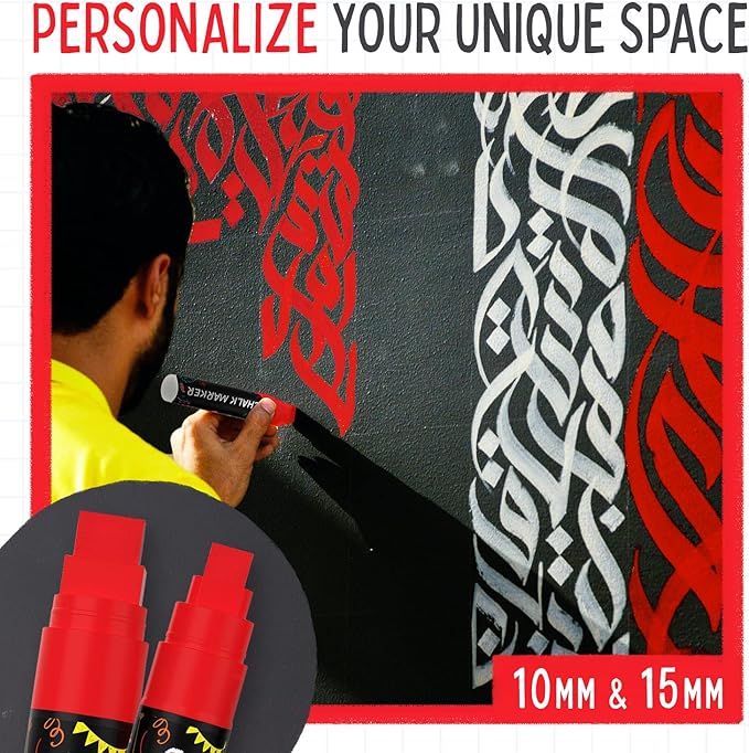 5 Red Chalkboard Chalk Markers - Red Dry Erase Markers for Blackboard, Chalkboard Signs, Windows, Glass | Variety Pack - Fine & Jumbo Size Ink Pen (1mm, 3mm, 6mm, 10mm, 15mm)