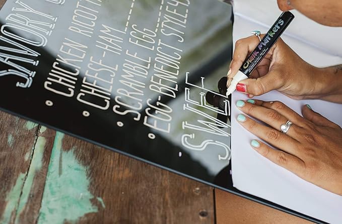 - ERASABLE on NON-POROUS SURFACES - Perfect for use on Non-porous chalkboards, menu boards, bistro boards, light boards, whiteboards, glass, metal, plastic, and more! Note, some chalkboards may not be suitable. We recommend testing on a small area first. These markers should not be used on chalk painted surfaces. Great for Bistro Boards, Menu Boards, Glass, Windows, White Boards, Classrooms, Mirrors, Non-Porous Chalk Boards, Plastic, Metal, and More!